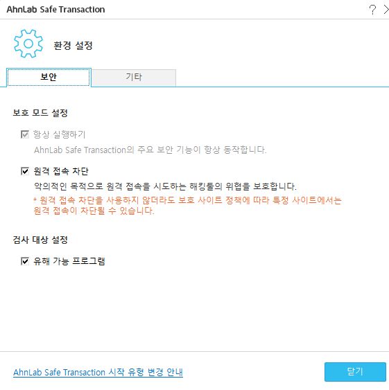 AhnLab Safe Transaction (AST) 시작 유형 변경 본문