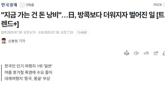일본 너무 더워서 일본여행 감소 (기사) 본문