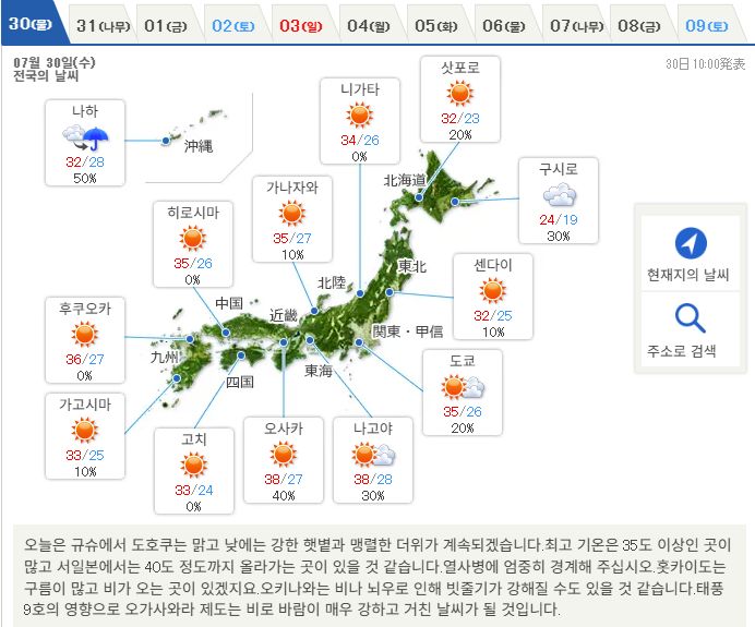 (반면, 우리나라 기상청은 시간대별 습도가 다 나오죠. 무척 잘 해놨습니다. 일본 기상서비스 중에도 그런 게 없지는 않을텐데, 여행갈 것도 아니라 더 찾아보지는 않았습니다.)