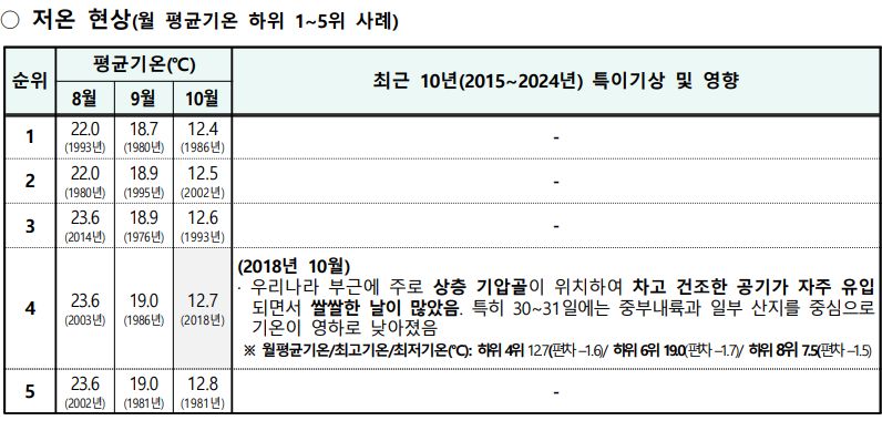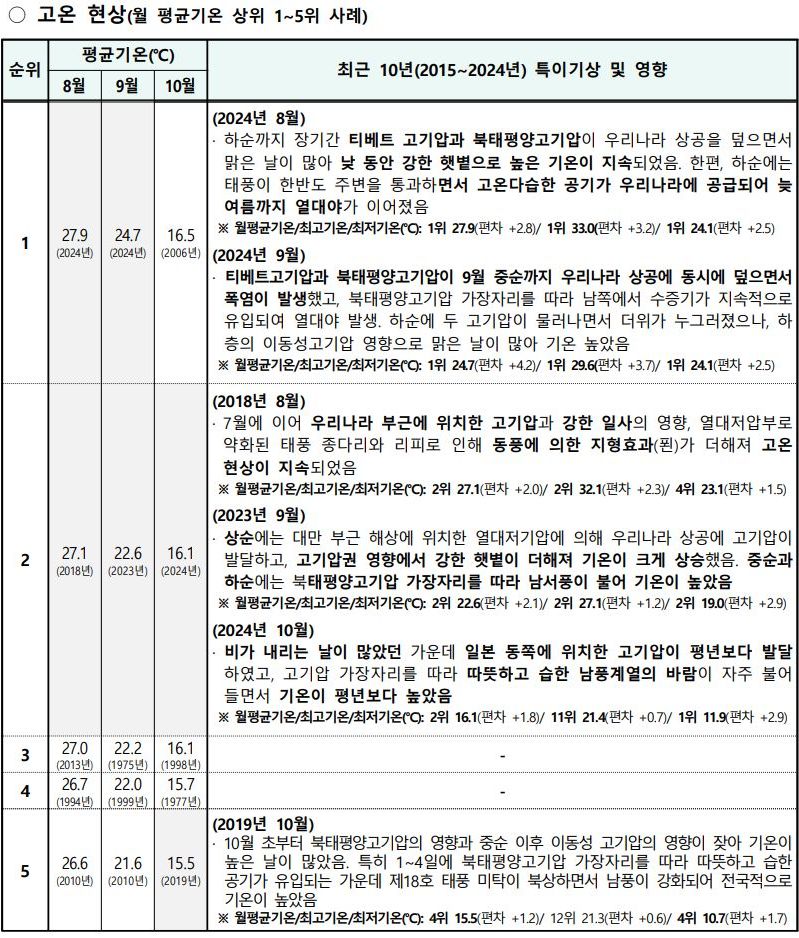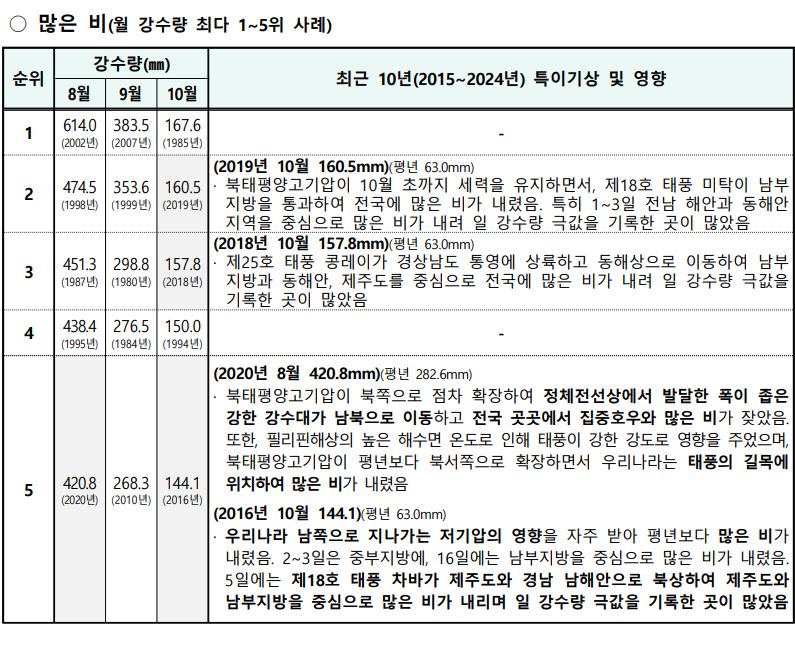최근 10년(2015년~2024년) 특이기상 및 영향
