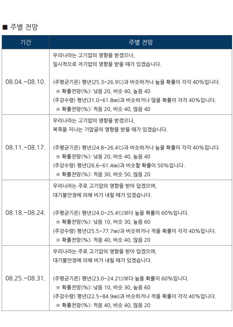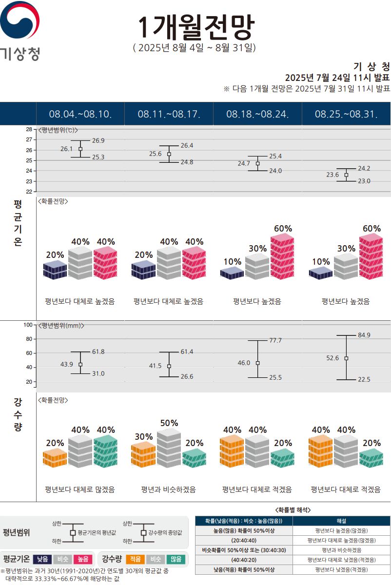 기상청 기후예측통보문, 1개월 전망 (2025.7.24.발표)