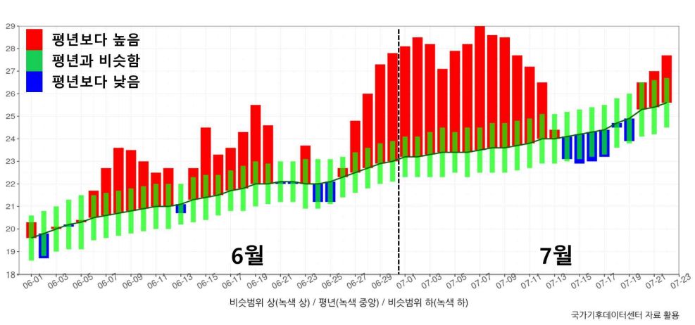 8월에 본격적인 더위가 시작될 것으로 본다. 이 추세로 가면 올해 8월에 역대 폭염 기록이 깨질 수 있을 것.