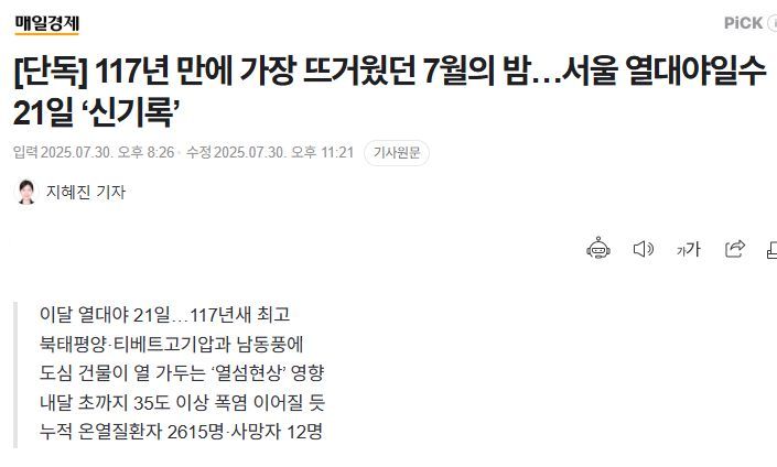 17년 만에 가장 뜨거웠던 7월의 밤…서울 열대야일수 21일 ‘신기록’ - 매일경제 2025.7.30
