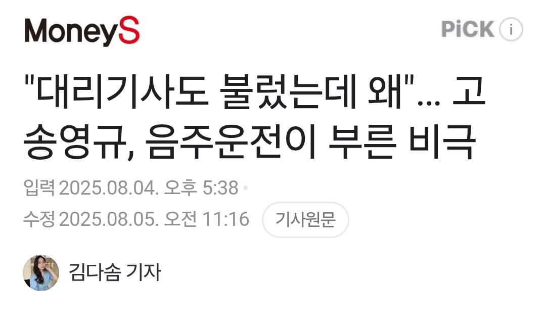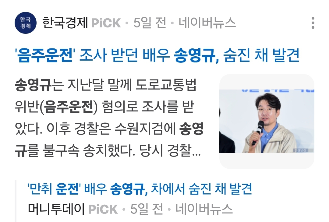 "대리기사도 불렀는데 왜"… 고 송영규, 음주운전이 부른 비극