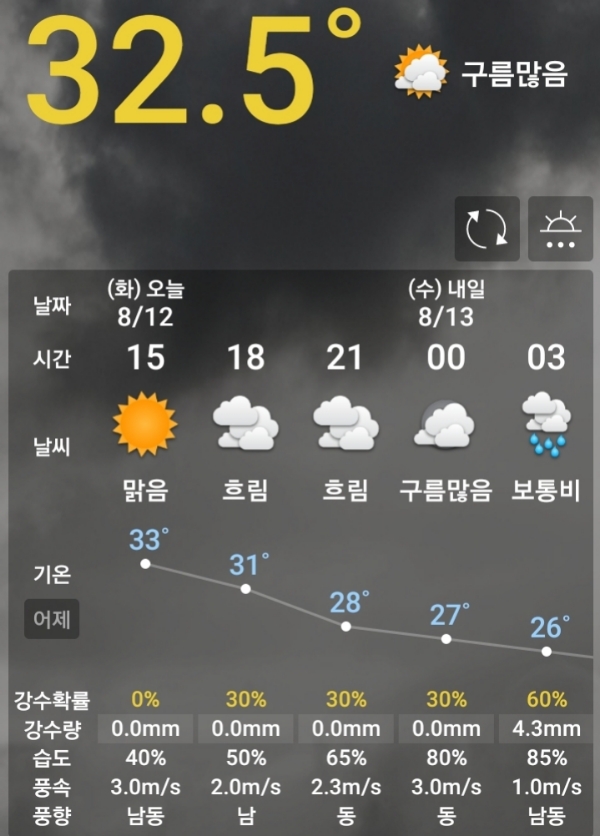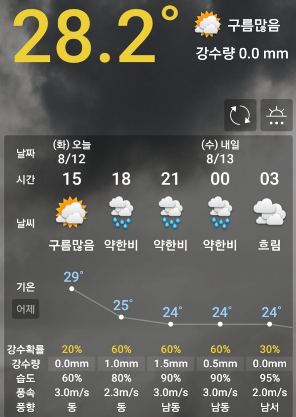 2025.8.12.화. 오늘 오전나온 기상청 예보