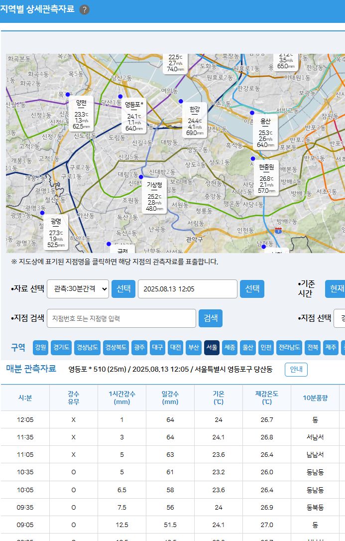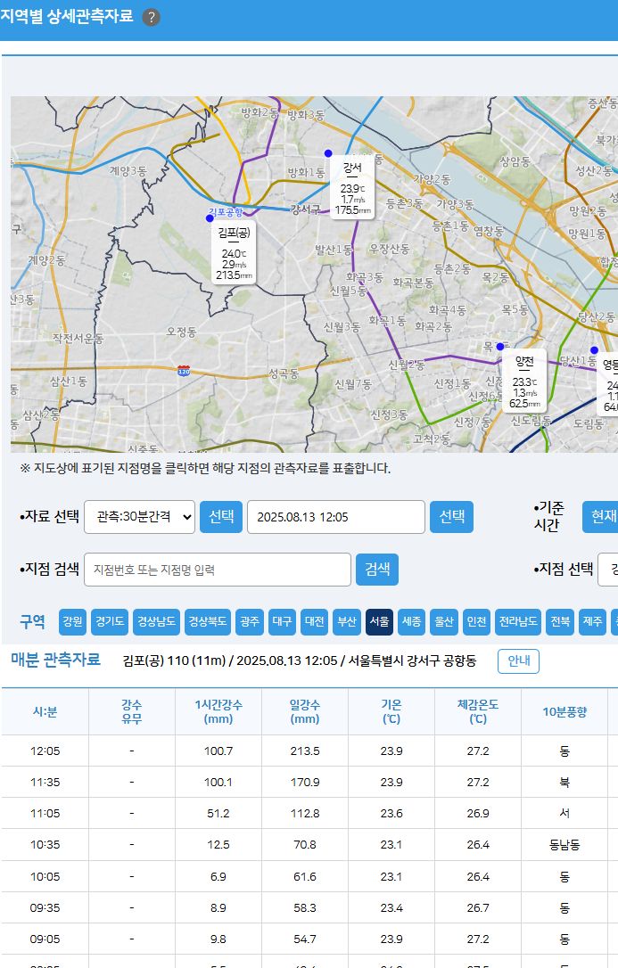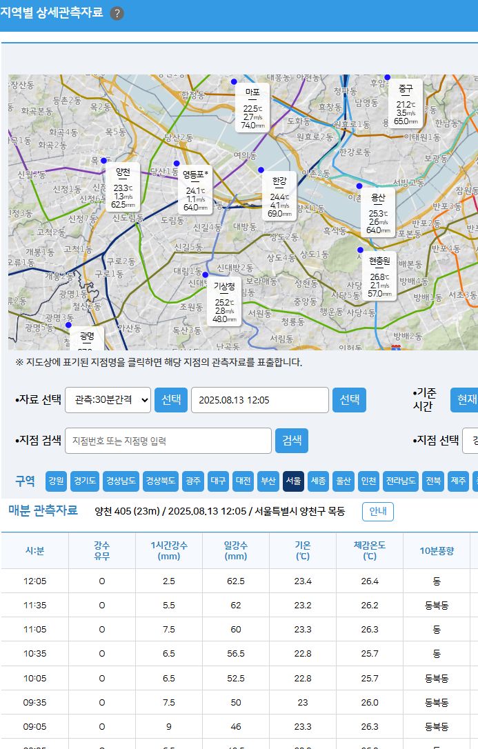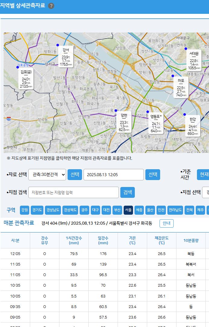 2025.8.13.수. 서울지역 극한호우, 바로 이웃 자치구 사이에도 큰 차이 본문