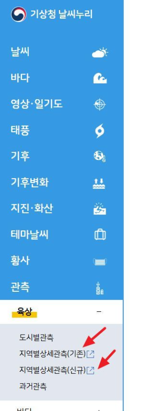 시간당 강우량 기록은 기상청 날씨누리 사이트에서, 메뉴를 보세요
