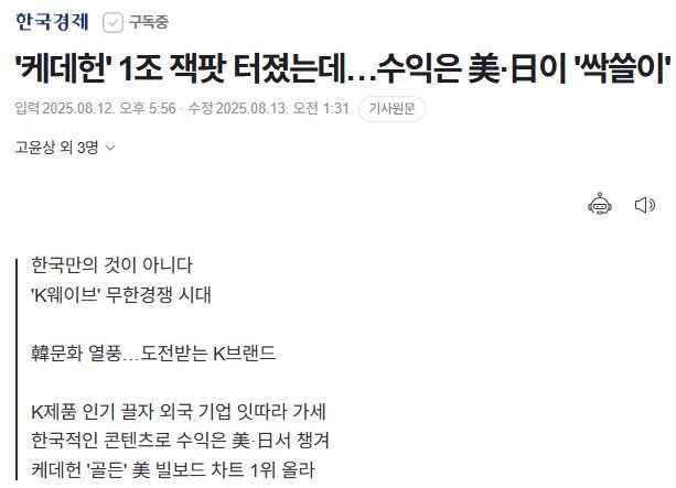 '케데헌' 1조 잭팟 터졌는데…수익은 美·日이 '싹쓸이'
