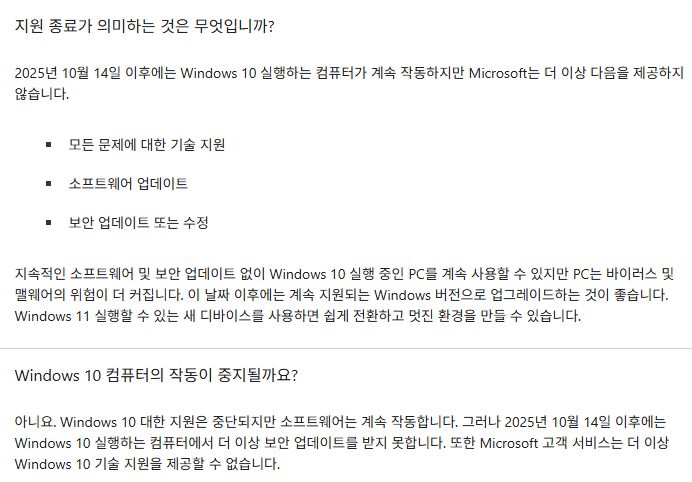 2025.10.14. MS 윈도우 10 OS 지원 종료, 관련 기사 조금 본문