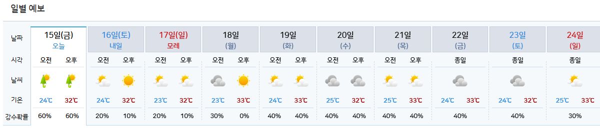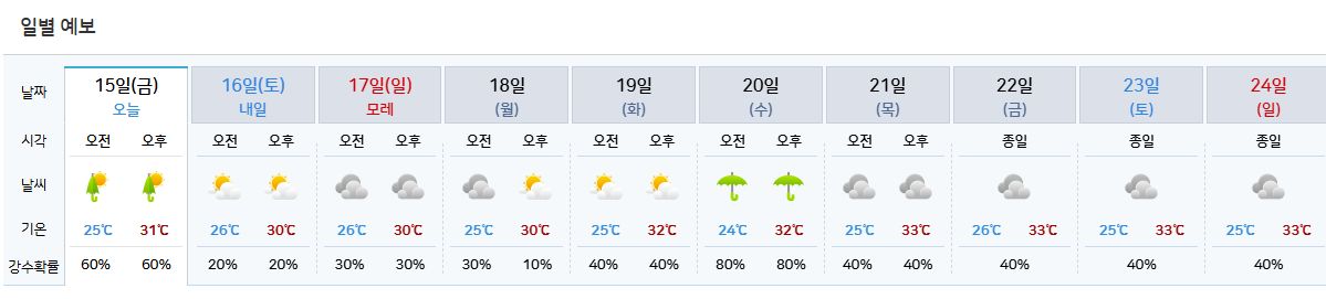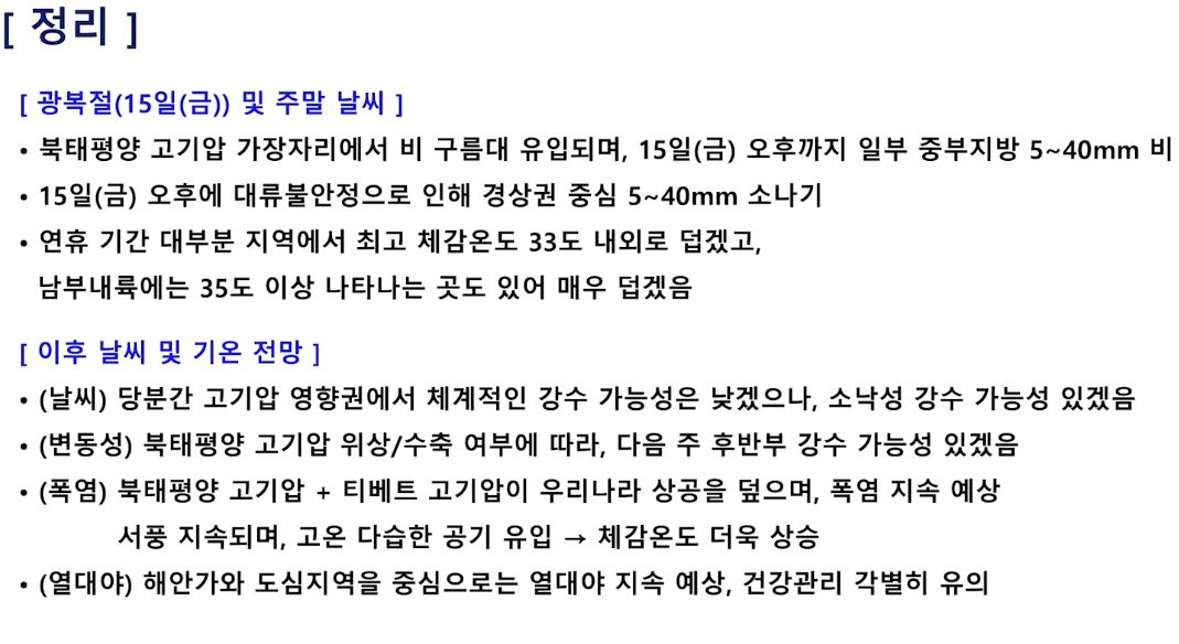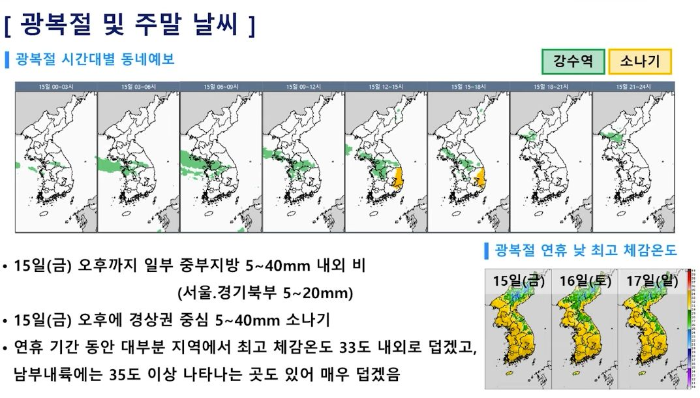 2025.8.15.금.~ 8.24.일: 광복절은 비오는 곳 있음, 내주부터는 열대야+폭염 예상 본문
