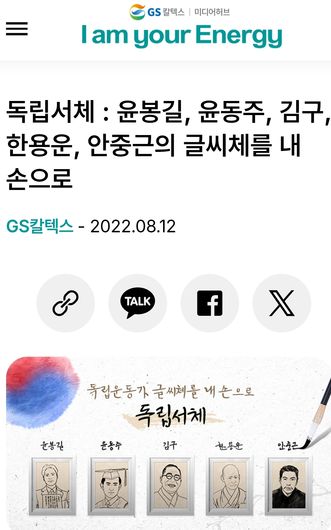독립서체 : 윤봉길, 윤동주, 김구, 한용운, 안중근의 글씨체를 내 손으로 | GS칼텍스 미디어허브