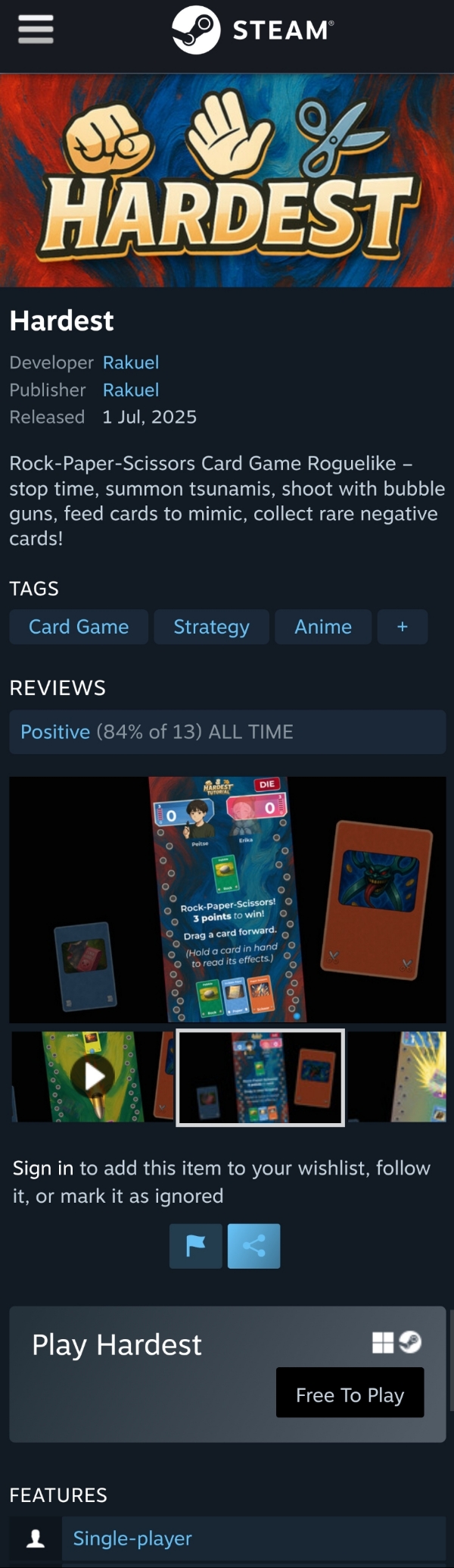 Rock-Paper-Scissors Card Game Roguelike – stop time, summon tsunamis, shoot with bubble guns, feed cards to mimic, collect rare negative cards!