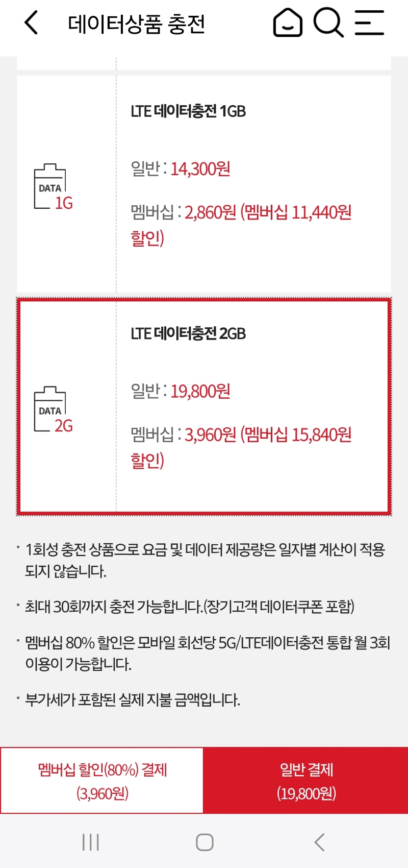 KT 데이터 충전, 멤버십 할인 결제, 월 3회 한정은 부족 본문
