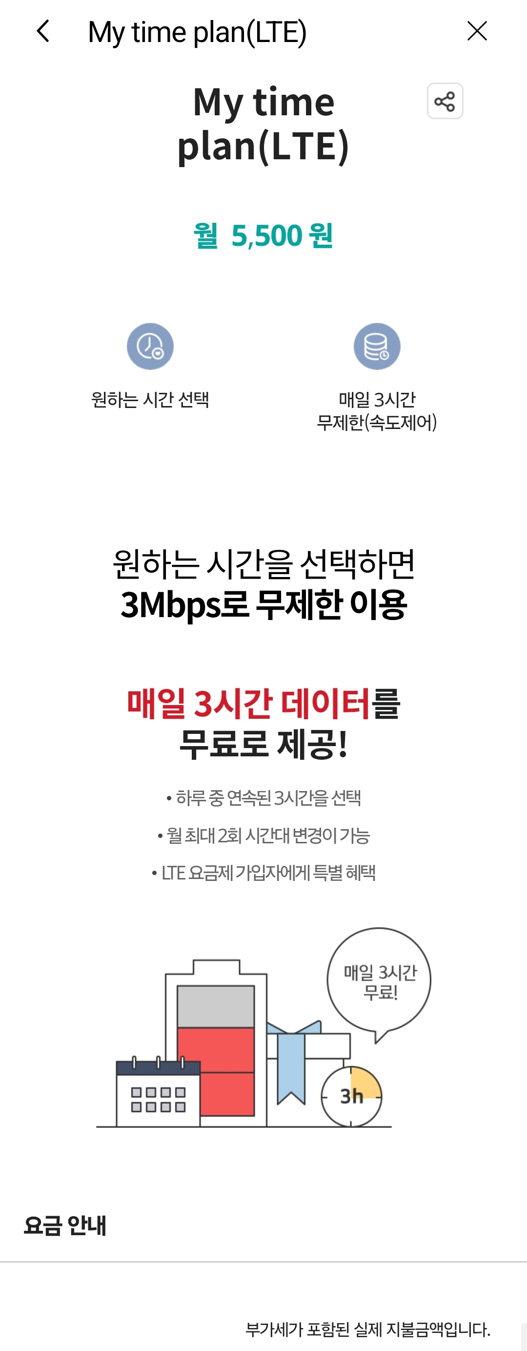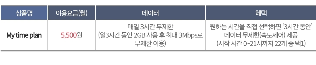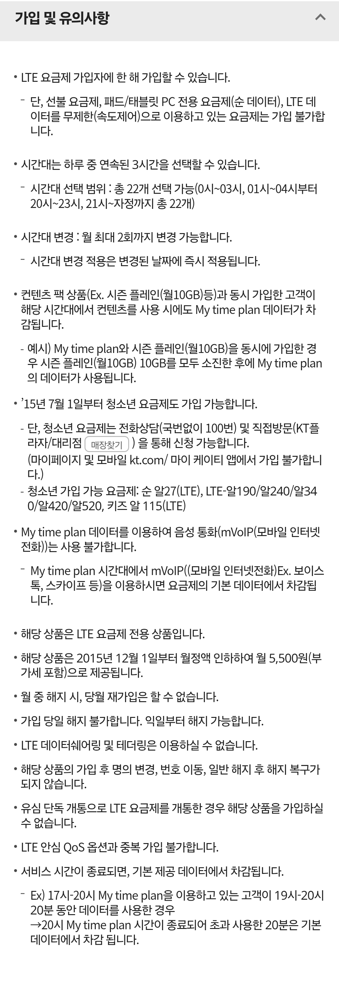 KT 데이터 부가서바스: My time plan(LTE) 월 5,500 원 본문