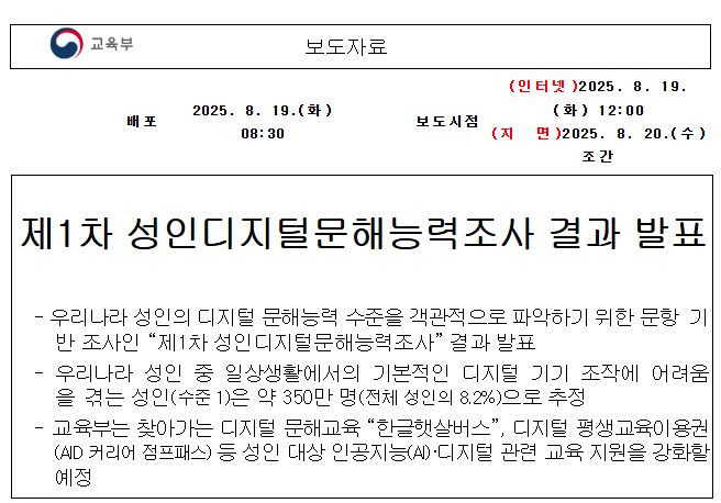 교육부, ‘제1차 성인 디지털 문해능력 조사’