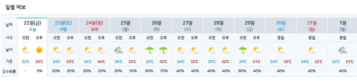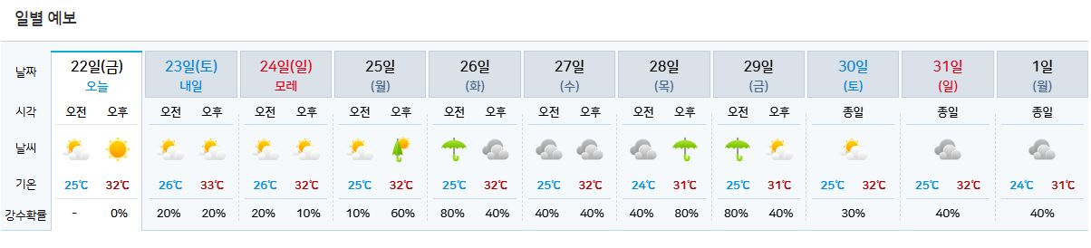 2025.8.22.금~ 9월 초까지, 일기예보. 폭염 계속 본문