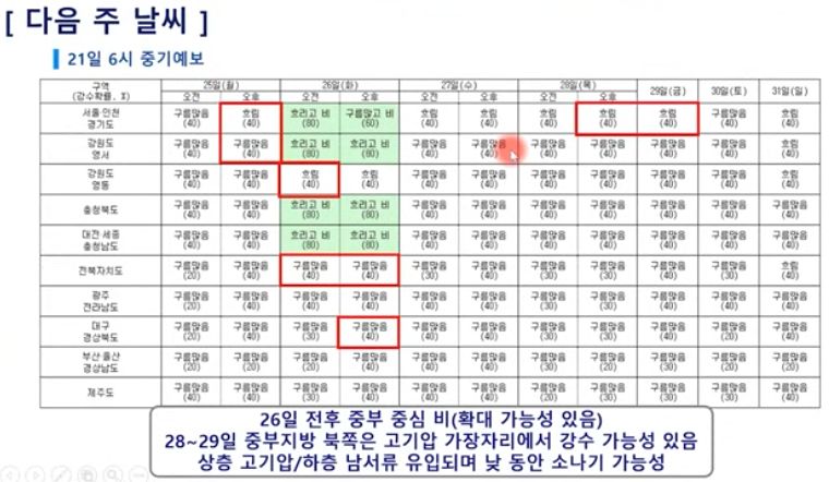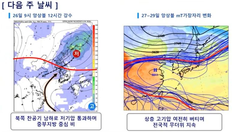ㅡ 다음 주 초 북쪽 저기압 지나며 중부지방 중심 비