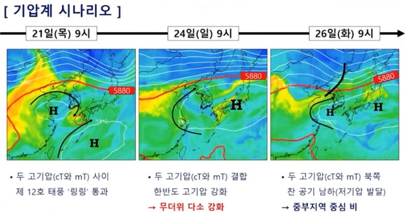 주말 폭염 더 강해지고 태풍 링링은 일본으로. (2025년 8월 21일 기상청 예보브리핑)