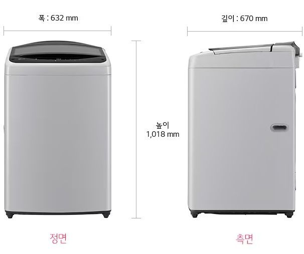 다만 어느 브랜드든 세탁용량은 말하지만, 세탁조 지름과 깊이라든가 용량부피는 카탈로그나 제품사양표에 표시하지 않습니다. (LG의 경우, 숏폼으로 소용량, 중용량, 대용량 세탁기에 인형을 넣어가며 보여주는 영상은 있지만 별 도움은 안 됩니다. 생각밖으로 통이 작아보이고.)