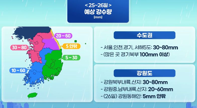 2025.8.25~26. 전국 어느 정도 비 (가문 강원 동해안은 매우 적은 비) 본문
