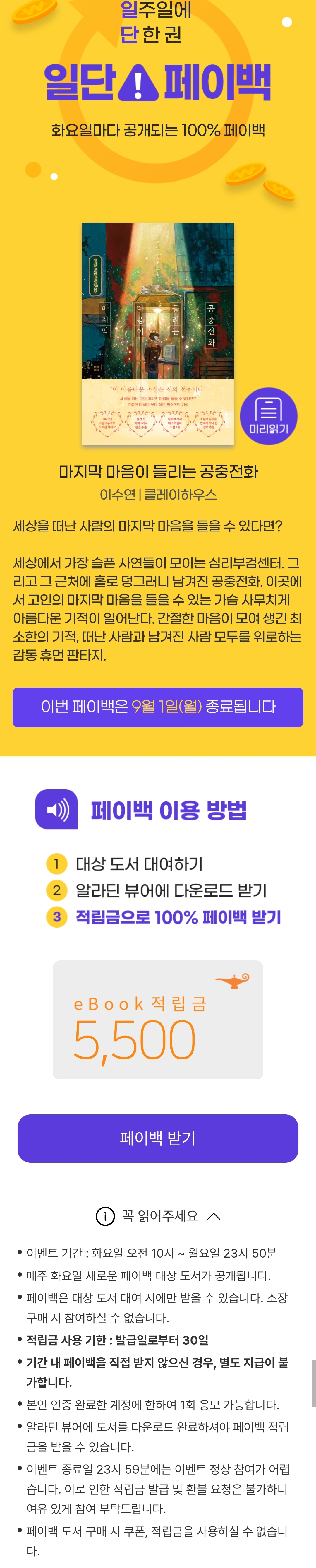 매주 화요일 100% 돌려드려요, 일단 페이백 마지막 마음이 들리는 공중전화