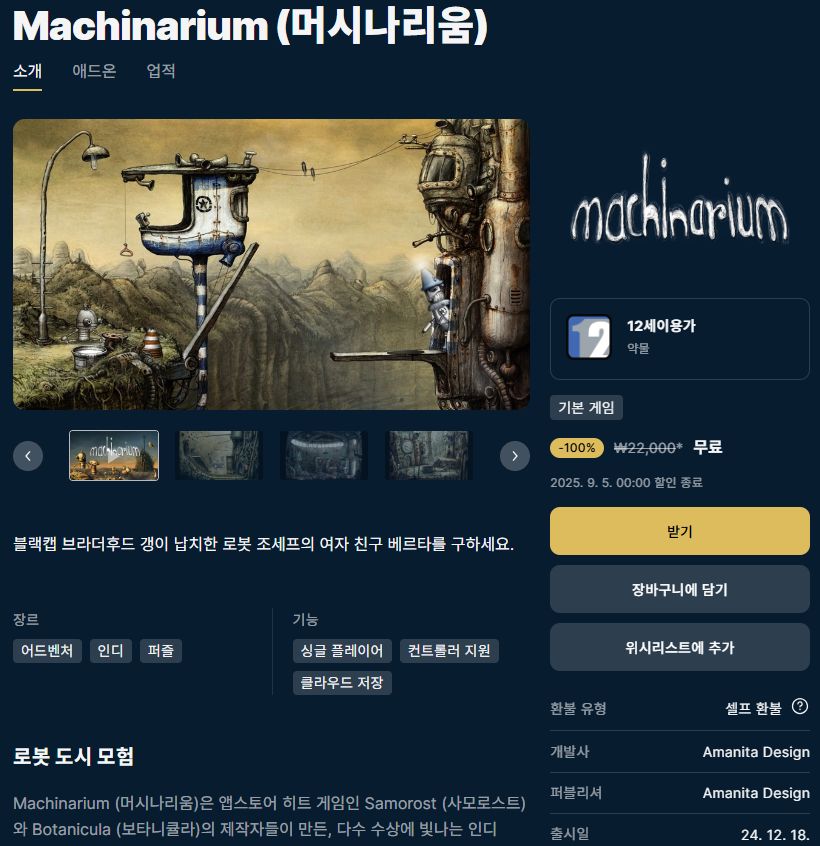 (에픽게임즈 무료게임) Machinarium (머시나리움) 본문