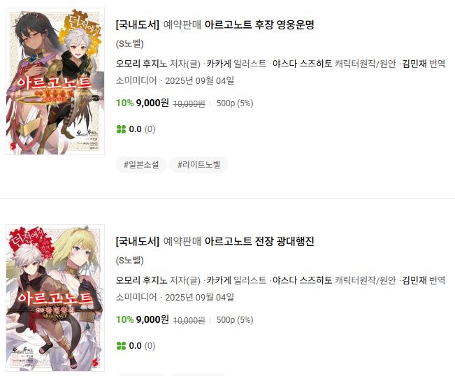 9월 4일 출고 예정으로, 지금 예약접수받고 있네요. 각권 9천원.