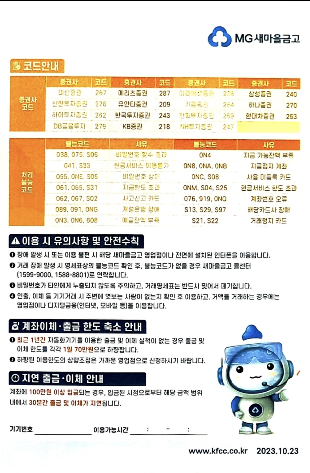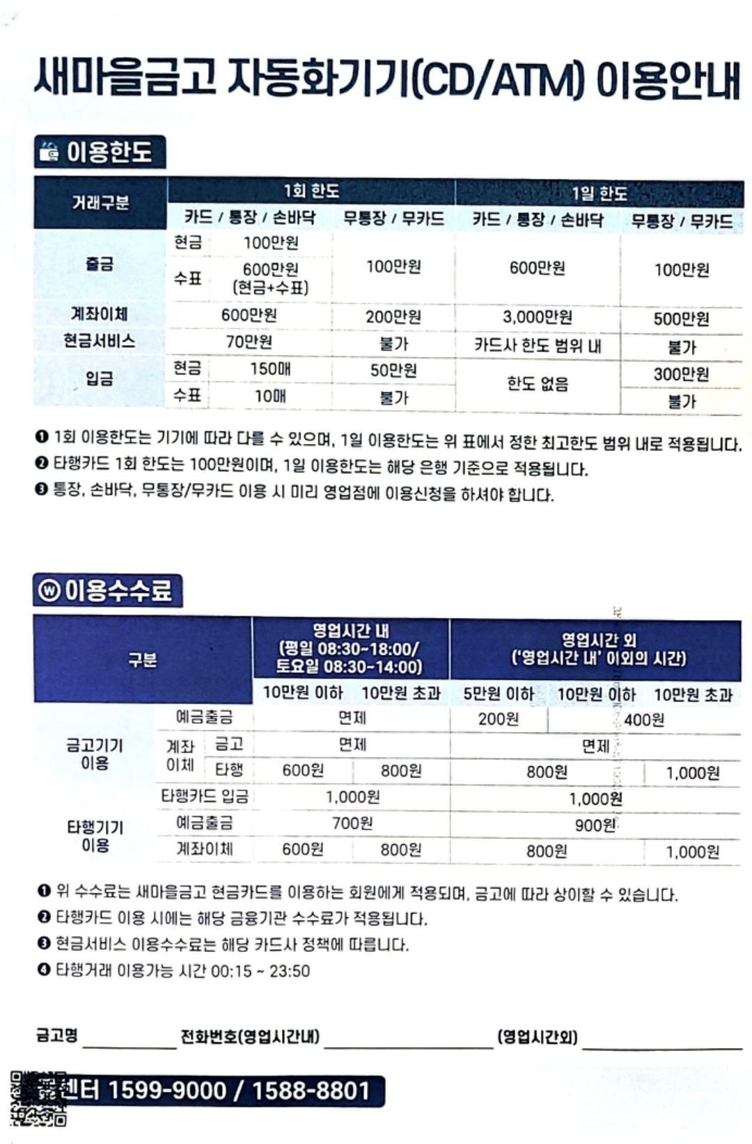MG새마을금고 자동화기기(ATM) 이용수수료, 2025.9.1 작성 본문