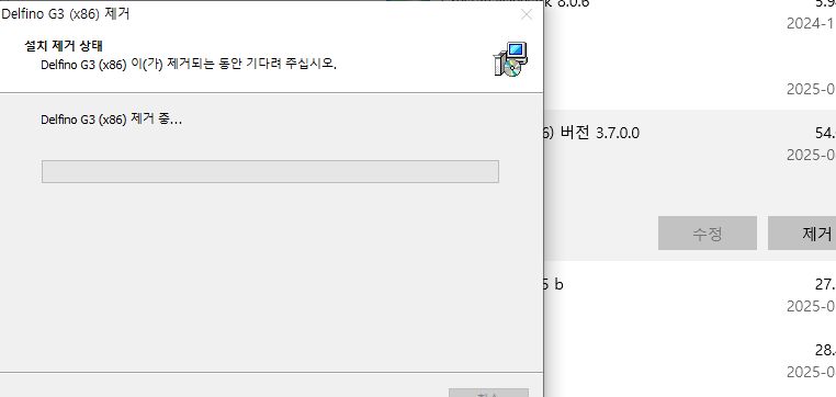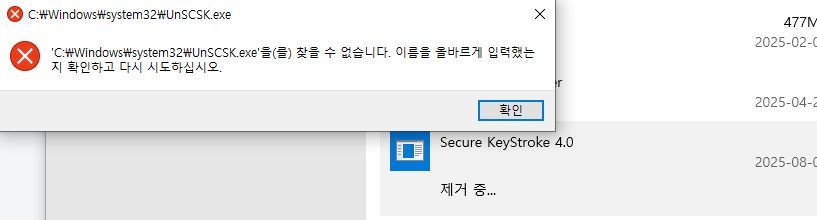 "앱 및 기능" 화면에서 지우다 아래와 같이 에러가 나면
