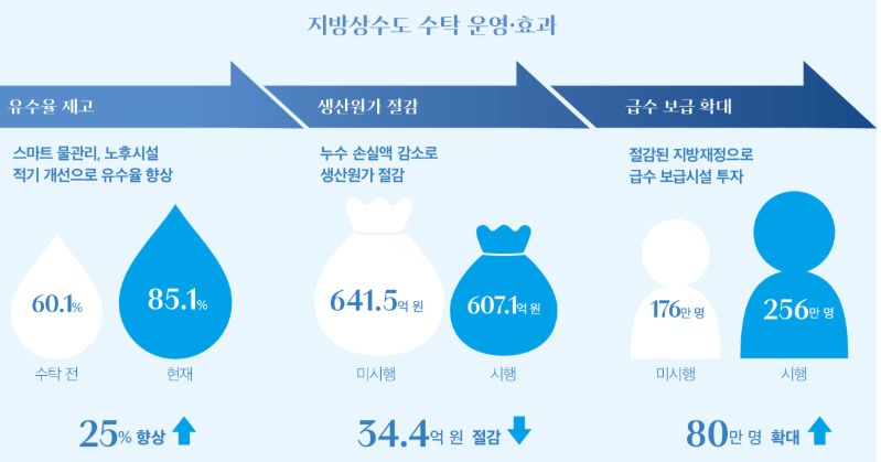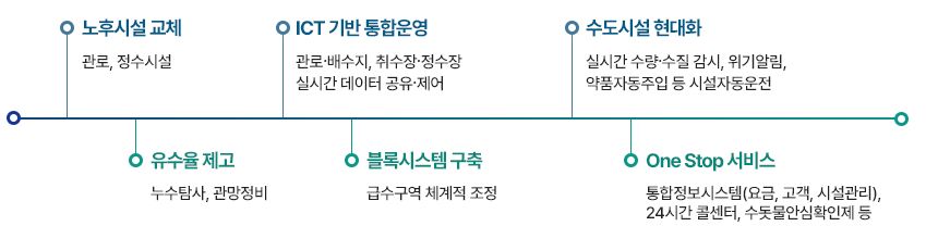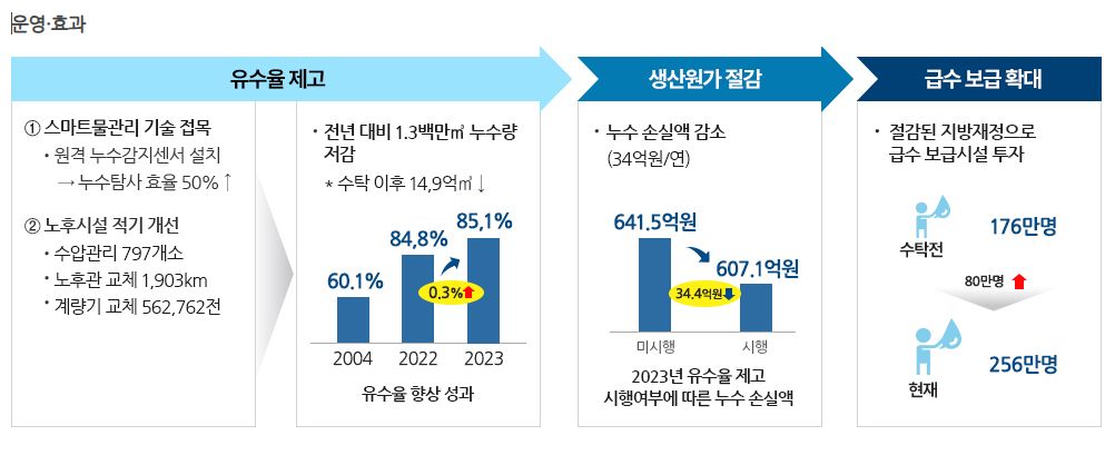 ◈ 지방상수도 통합으로 노후 시설 현대화, 유수율 향상, 지역간 서비스 격차 해소로 양질의 수돗물 공급