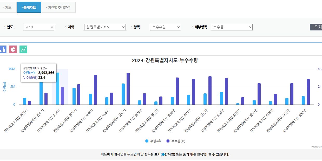 (여기 그래프보면 강원도는 다른 지역보다 수도요금이 비쌉니다)