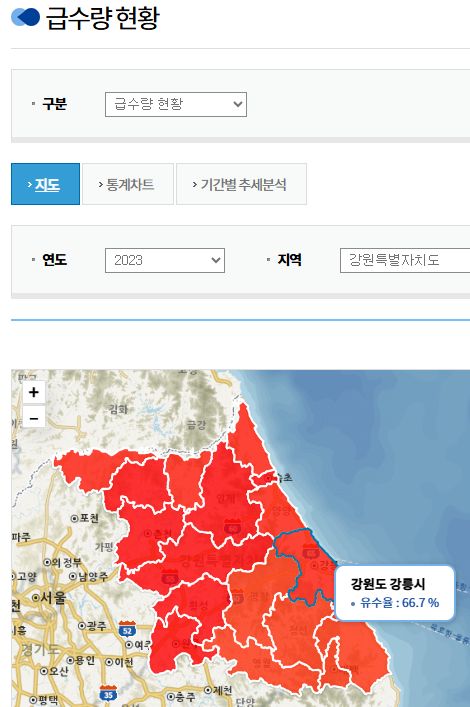 사실 강원도의 대관령 서쪽 기초자치단체들 상수도 인프라 운영 사정은 강릉보다 별로 나을 것도 없는 것 같습니다. 속초가 유달리 적기에 투자해 재해를 예방한 것이라고 보는 게 맞을 듯.