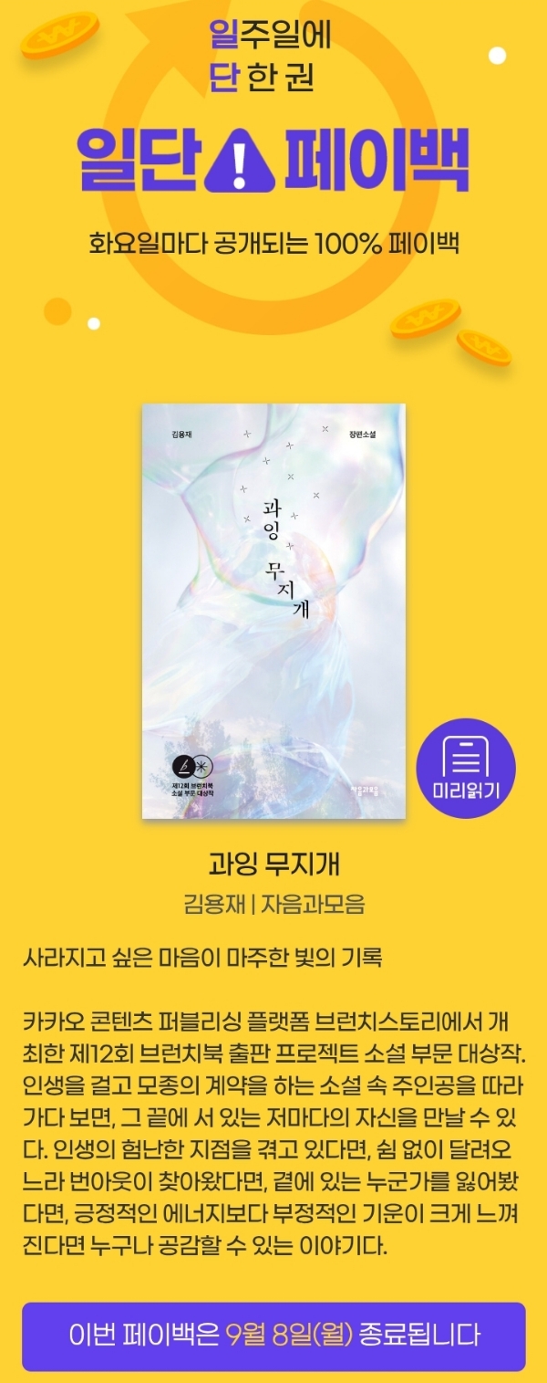 전자책전용 기간한정 적립금으로 돌려줍니다. 전자책살 일이 있다면. 조건 등 자세한 내용은 아래 설명.