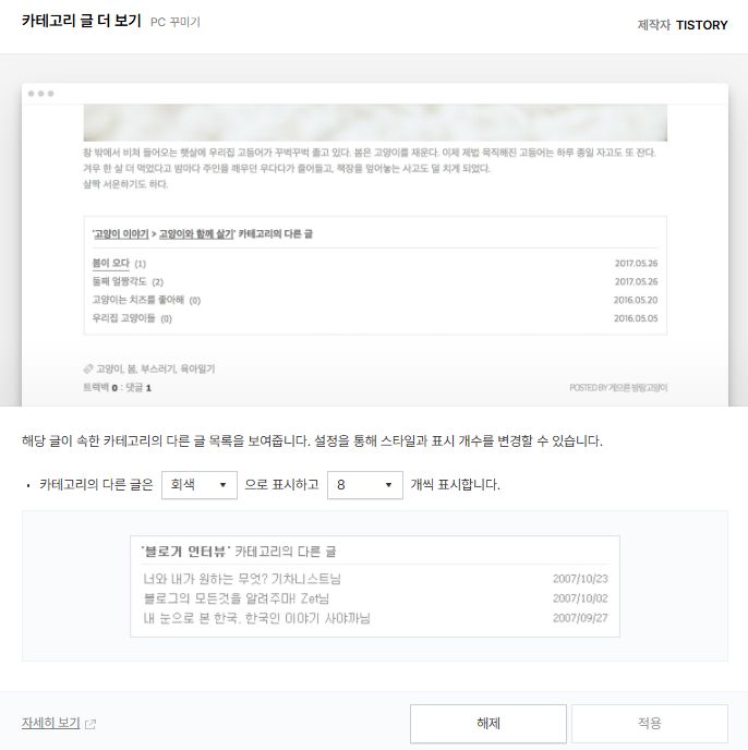 티스토리 자체 광고의 위치, 카테고리글 더 보기 플러그인에 대해 본문