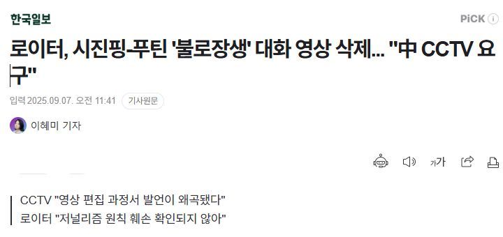 지난 3일 중국 베이징에서 열린 중국 전승절 80주년 기념 열병식 도중 우연히 노출된 시진핑 중국 국가주석과 블라디미르 푸틴 대통령의 '불로장생' 관련 대화 영상이 삭제됐다. 중국 관영 매체