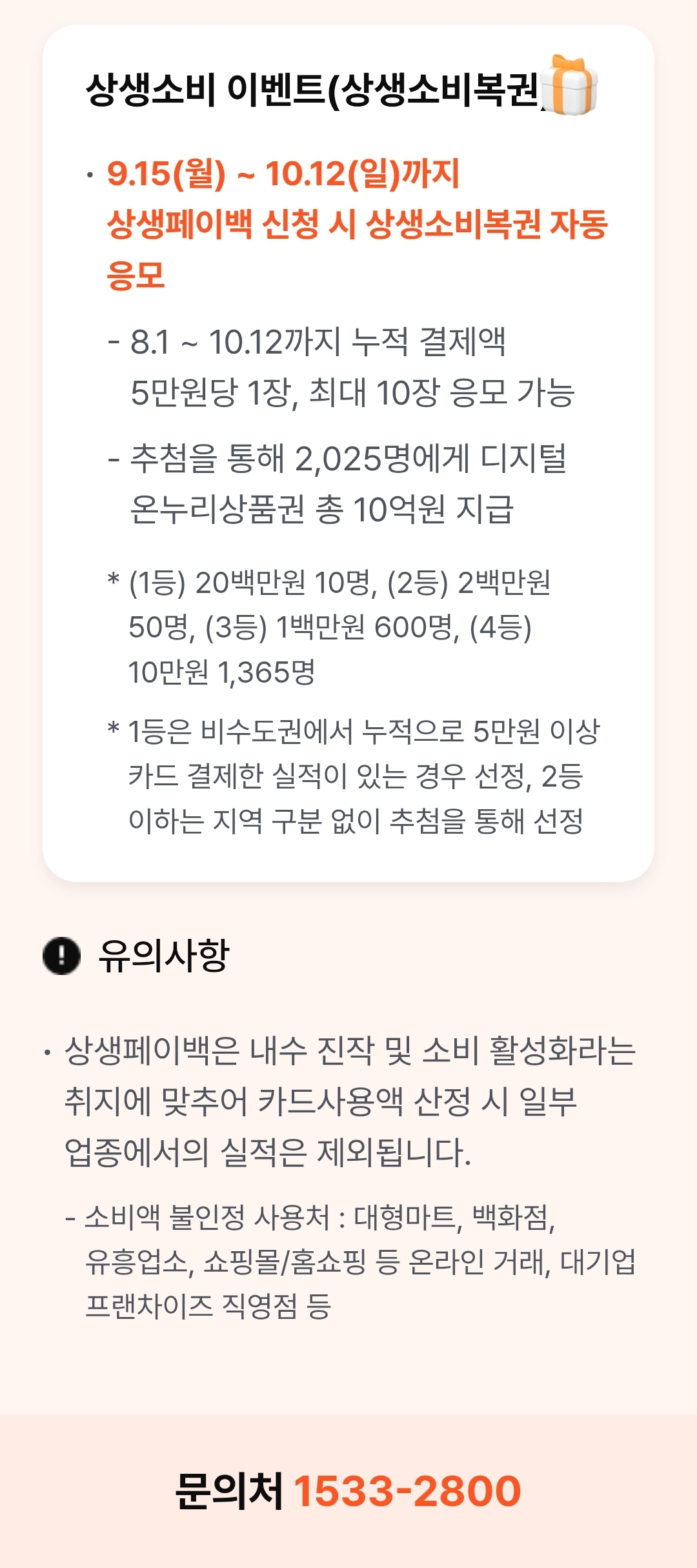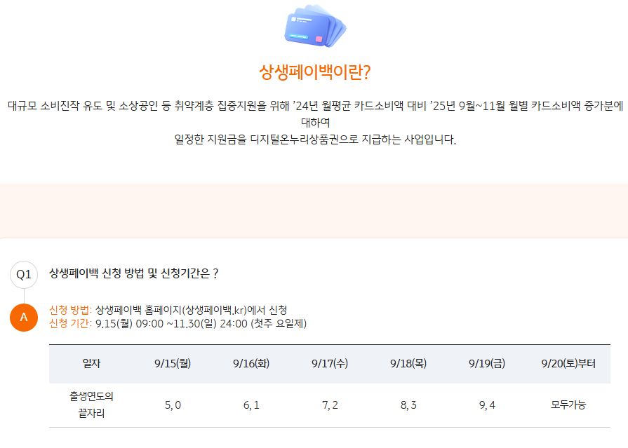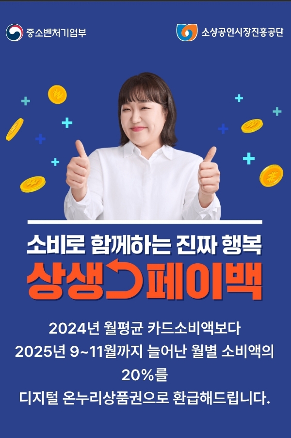 상생페이백: 2025.9~11월 소비진작 캠페인 (상생페이백.kr 에 직접 신청해야 응모됨) 본문