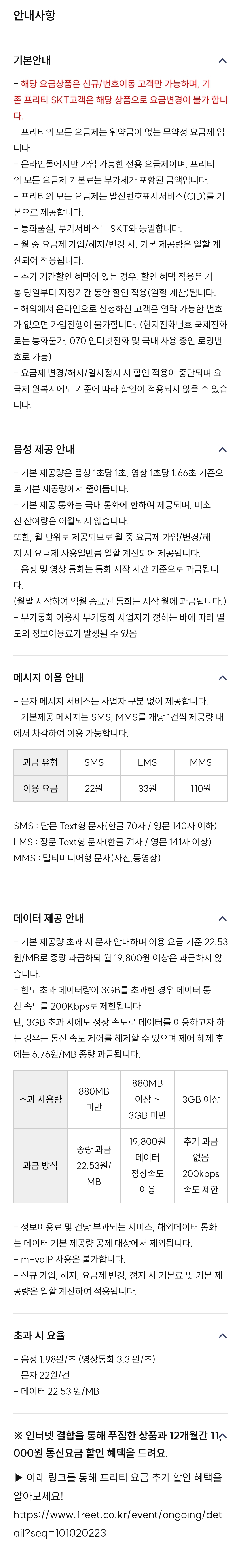프리텔레콤 https://www.freet.co.kr/plan/ratePlan/detail?svcCd=PC0SB00178