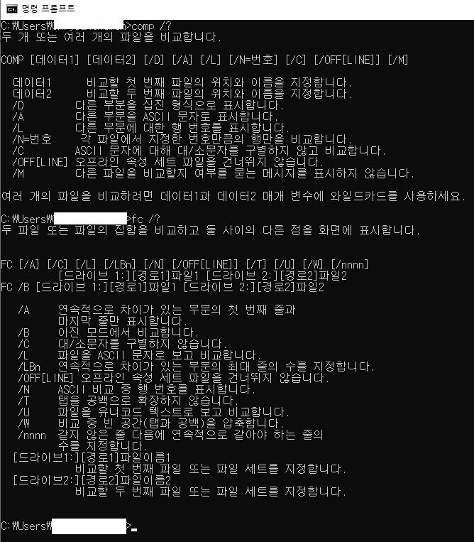 윈도우 10 CLI(명령 프롬프트) 화면에 fc 와 comp 명령어는 살아있군요? 본문
