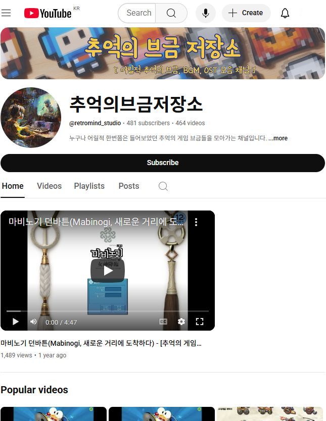 추억의브금저장소 (유튜브 채널, 링크): 게임음악 모음 본문