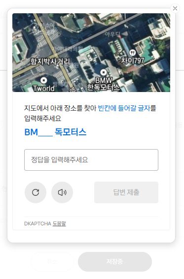 그리고 디캡차 도움말 링크를 클릭해 읽다가 도움말창을 꺼도 아래 화면으로 가서 저장이 안 됩니다.