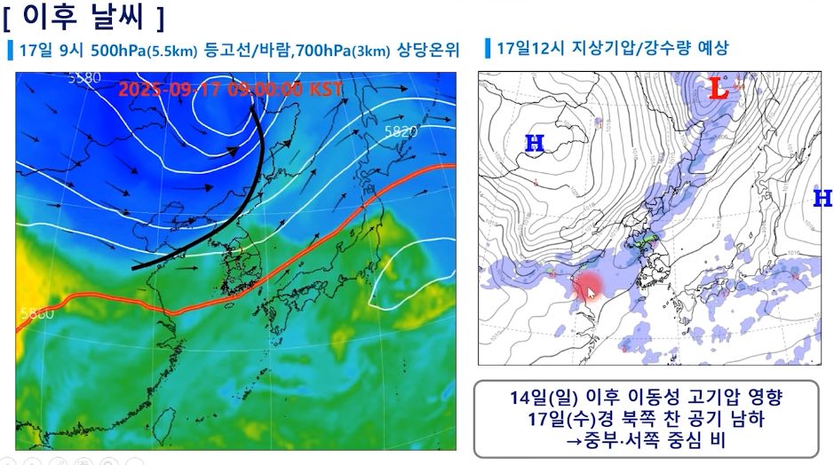 2025.9.11. 주간 예보브리핑) 강릉에 드디어 비가! 금요일 서쪽부터 시작되고 토요일 전국 비.