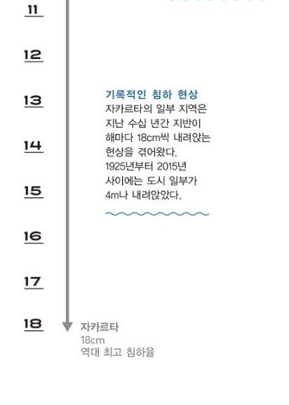 홍수로 시장이나 집이 물에 잠기는 경우가 잦은 자카르타는 2050년이 되면 일부분이 아예 바다 속으로 가라앉게 된다.