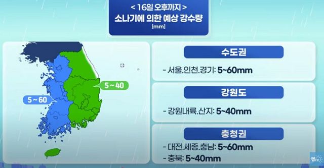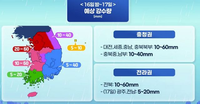 2025.9.16.화. 오후에 곳에 따라 소나기, 밤부터는 전국에 비. 전체적인 강수량은 대단하지 않아도 짧은 시간에 집중해 내릴 수 있으니 대비 본문