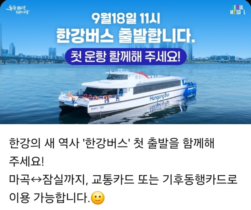 그리고 서울 안에서 나가지 않고도 혹은 나가지 못하는 일반 시민이 배를 타보고 숨돌릴 수 있는 수단이 생기는? 늘어나는? 건 나쁘지 않죠. 일각에서는 이거 전철보다 느리다며 타박하지만, 그건 개발시대 빨리빨리 관념에 매몰된 짧은 생각입니다. 요즘은 주말만 돼도 외국가서 숨돌리고 오려는 사람들이 많습니다.