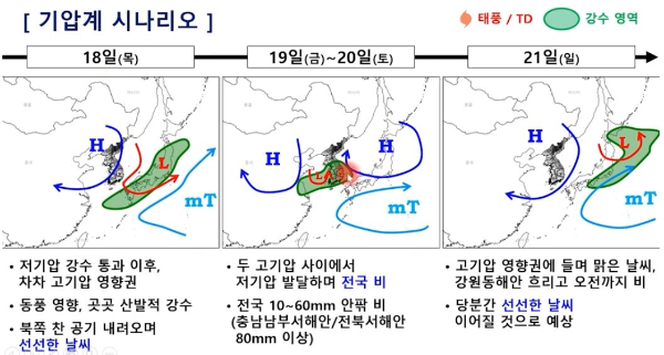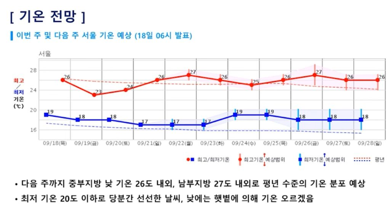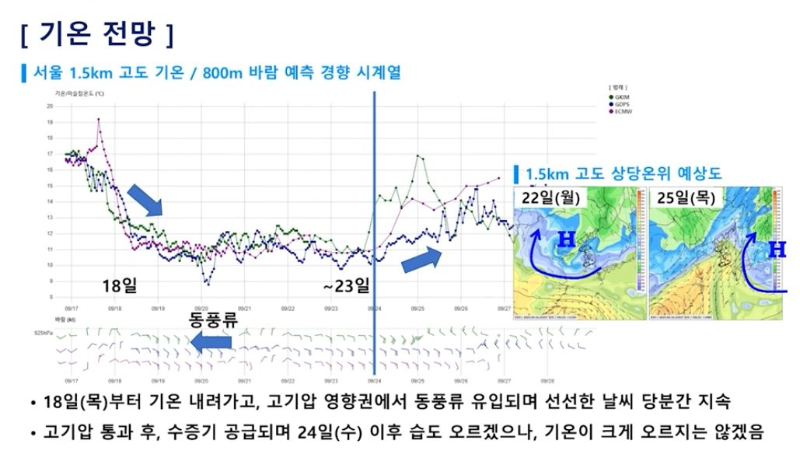 이게 얼마만의 기온인가! 금요일부터 또 비! 토요일 아침까지 요란하게 내립니다. (2025년 9월 18일 목요일 기상청 예보브리핑)