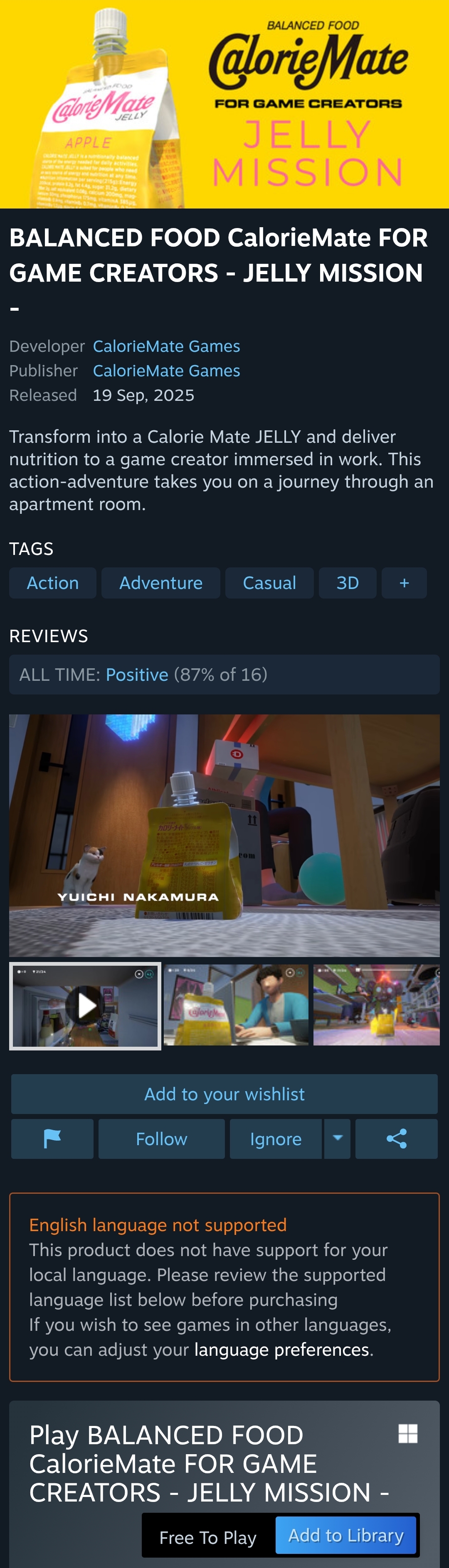 (스팀 무료게임) BALANCED FOOD CalorieMate FOR GAME CREATORS - JELLY MISSION - 본문