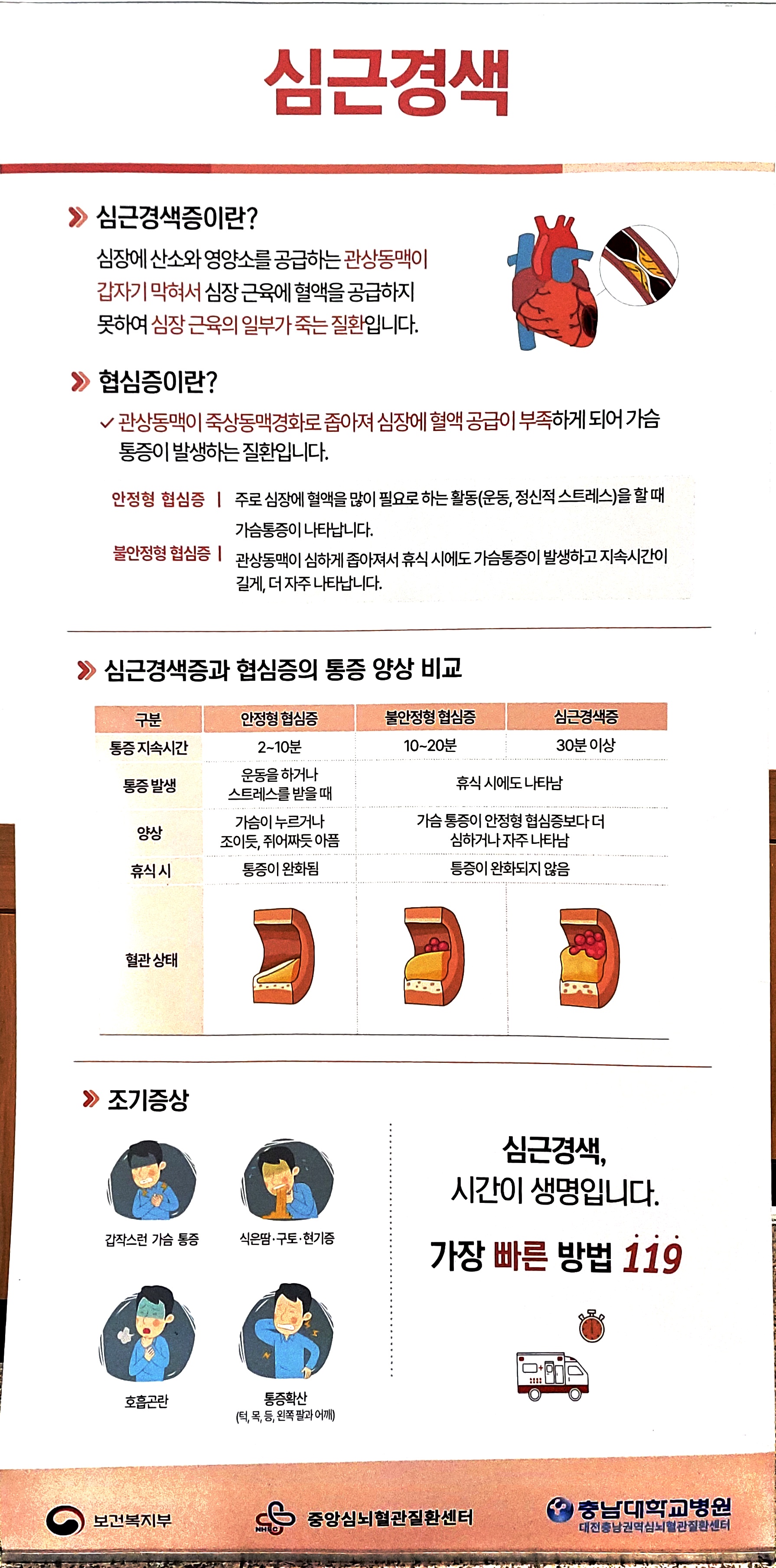 심근경색 발병시 119걸어서 응급실에 실려와 처치나 시술을 받으면 좋은점: