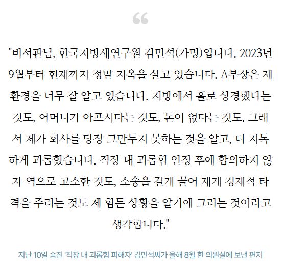 행정안전부 산하 지방세연구원, 직장내 갑질 사건 기사 본문