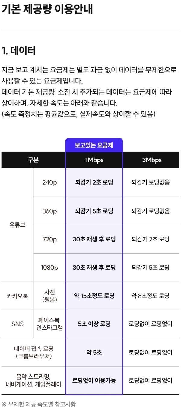ㅡ 데이터 4.5기가+1Mbps QoS