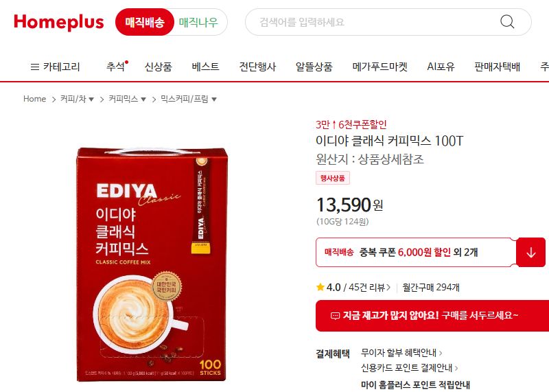 그러고 보니 홈플러스 매장에 가보면 맥심과 네슬레말고도 여러가지 커피믹스가 많았죠. 가끔 다른 걸 시도해보다 구관이 명관이라며 돌아오곤 했는데, 나중에 가면 다시 그 코너에 들러봐야할 듯. 오프라인 카페 브랜드가 커피믹스도 브랜딩해서 판다는 얘길 보기는 했습니다.